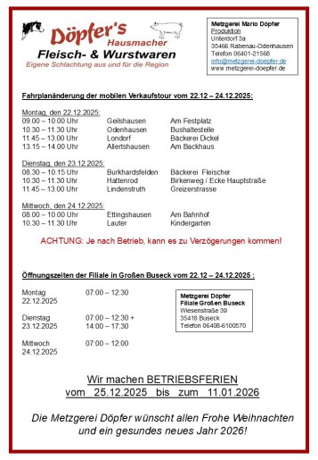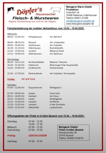 Sie auch weiterhin mit frischen und leckeren Fleisch- und Wurstwaren versorgen zu können.